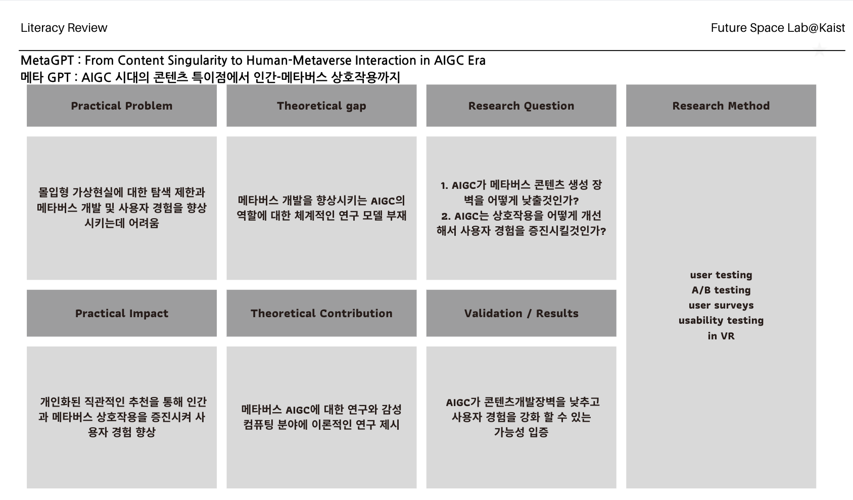 Lee, L. H., Zhou, P., Zhang, C., & Hosio, S. (2023). What if we have MetaGPT? From Content Singularity to Human-Metaverse Interaction in AIGC Era. arXiv preprint arXiv:2304.07521.