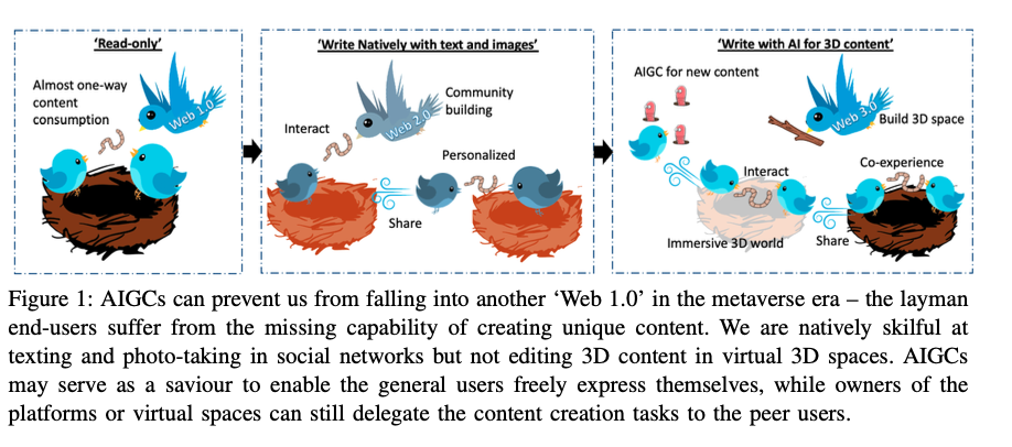 따라서 컨텐츠 생성을 하는 사용자의 인터렉션의 중요성을 두고있다. 따라서 AIGC는 프롬프트 디자인에 초점을 맞추며 가상현실에서 사용자를 도와주는 역할을 한다.